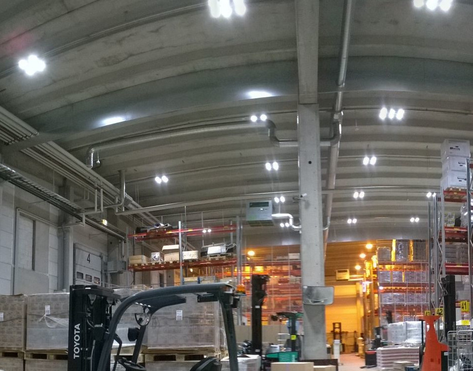Tuotantotilan valaistuksen vaihto energiatehokkaaseen LED-valaistukseen yhteistyössä valaisintoimittajan kanssa.